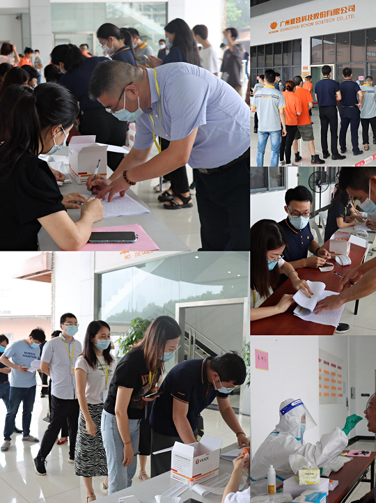 检测过程中,全体员工听从工作人员安排,有序排队,间隔站位,积极配合医护人员采样,齐心协力,有条不紊,检测时间为14:30-18:30,历时四小时,圆满结束。经检测,毅昌股份全体员工均无异常。