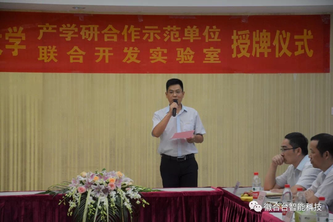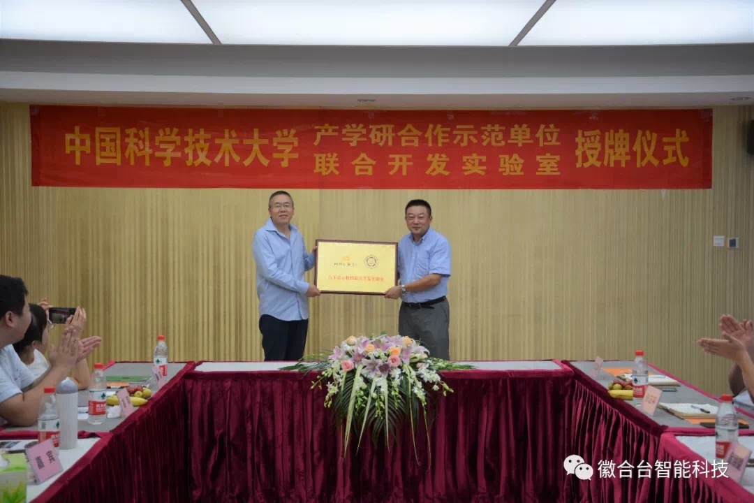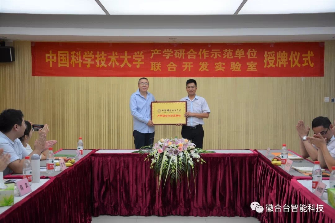 2019年9月5日,中国科学技术大学与安徽徽合台智能科技有限公司产学研合作授牌仪式隆重举行。合肥市科技局副局长吴海军先生、基础研究与平台建设处处长陆晓东先生、中国科学技术大学校领导王志刚先生、毅昌股份总经理/徽合台董事长徐建新先生、安徽毅昌总经理/徽合台董事吴强先生、徽合台总经理余求玉先生、徽合台管理顾问喻允斌先生,以及来自中科大的师生代表、安徽毅昌的管理团队出席本次仪式。